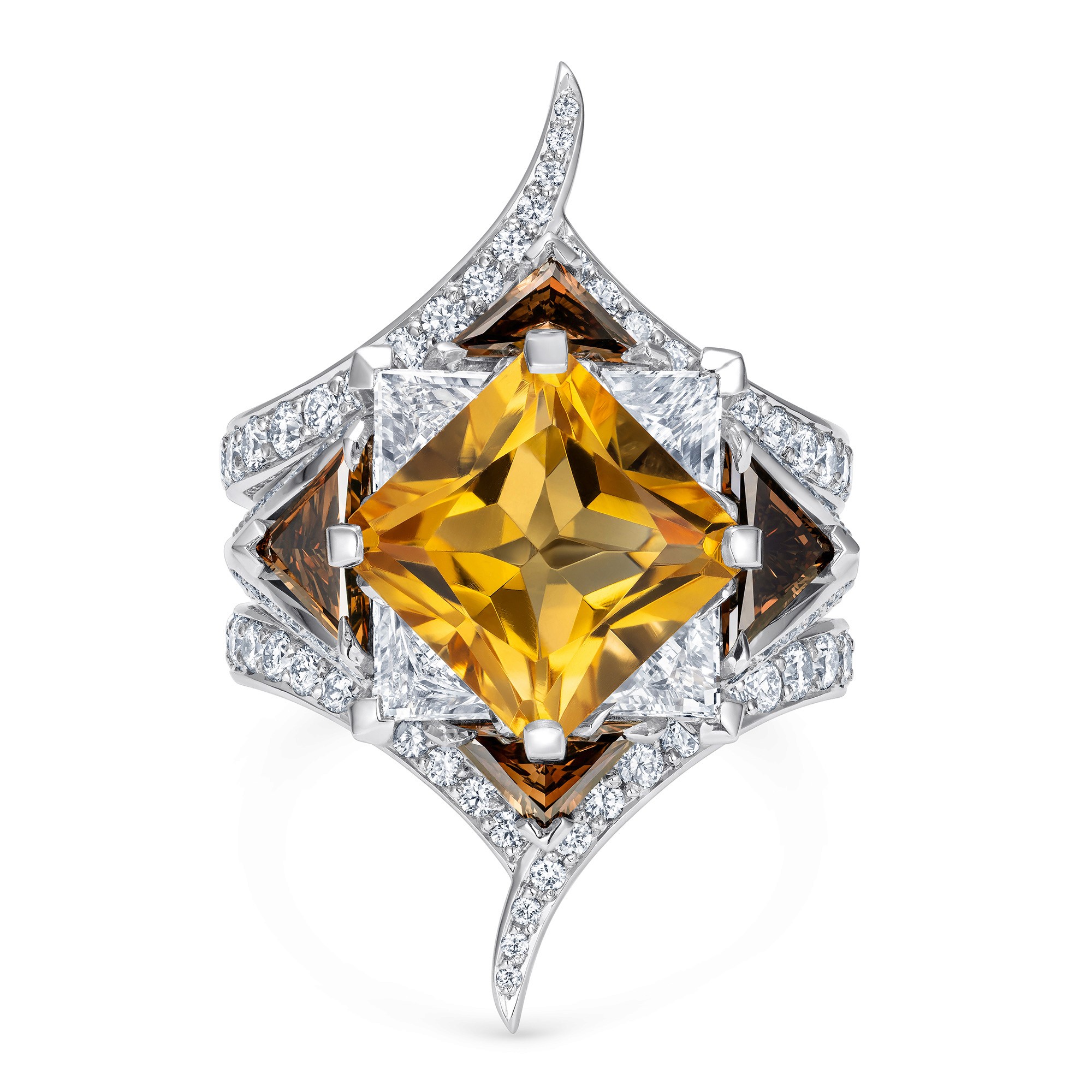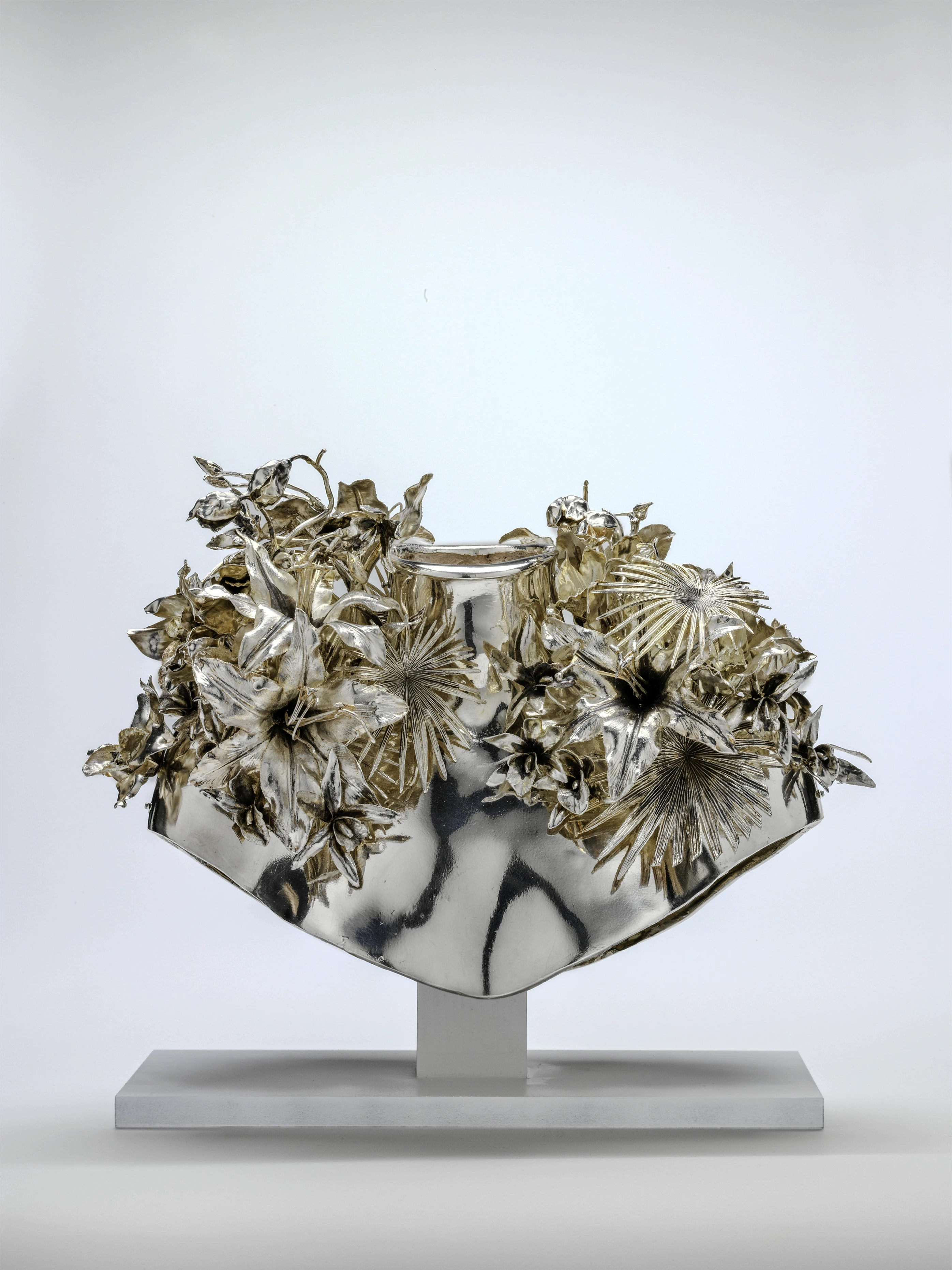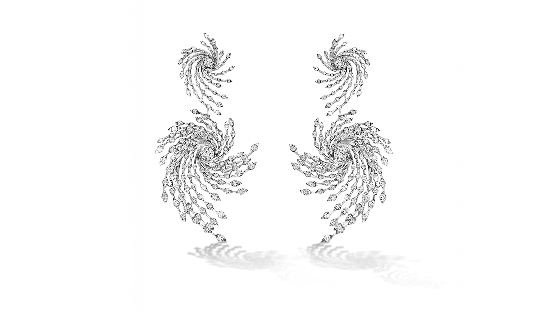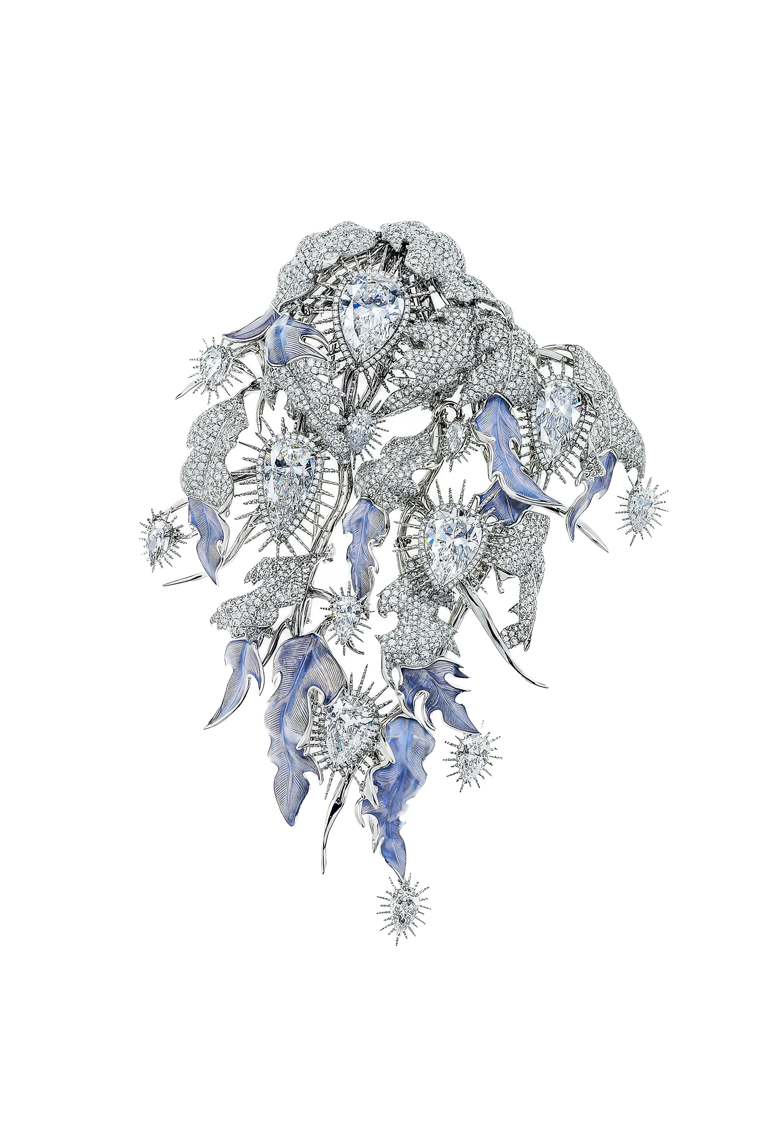 Leane’s dazzling white gold and diamond White Light brooch was made in 2009 for his much-publicised commission from De Beers. He was later appointed Creative Consultant to London heritage jeweller, Asprey, where his white gold and brilliant white diamond Storm ‘2013 necklace was made, and Leane’s Woodland collection for Asprey is now an iconic part of the company’s heritage.