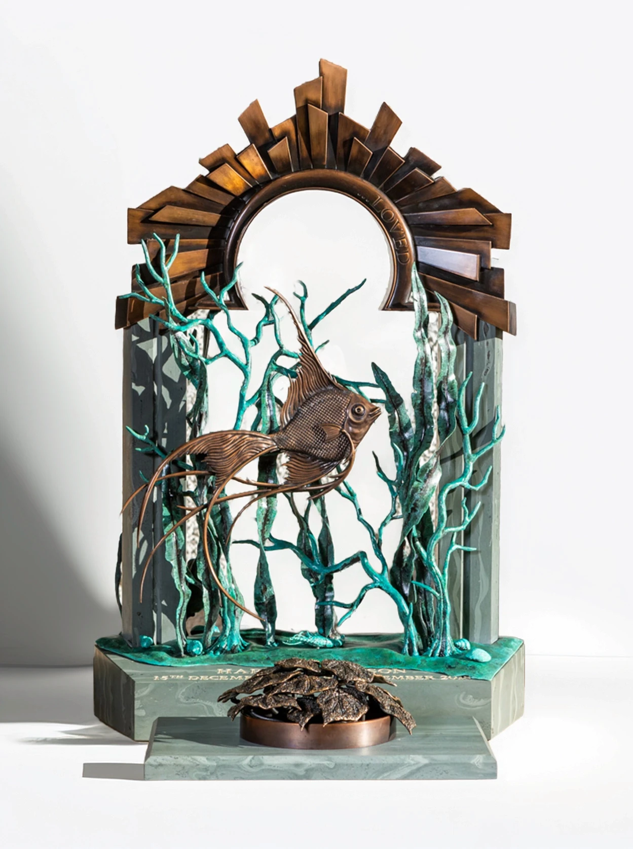 Leane’s boundless aesthetic permeated into architecture, in 2018, with Arbour; an eight-story residential building at 21 Young Street, Kensington, London. Featuring 1,850 bronze leaves and branches, Leane’s vision of a metal-clad urban forest won the much sought-after commission from Grainger plc in collaboration with Futurecity. It heralded a growing interest in the modernization of the Kensington and Chelsea district, and a section of the building’s facade is now on permanent display at the Victoria and Albert Museum, London (V&A)
