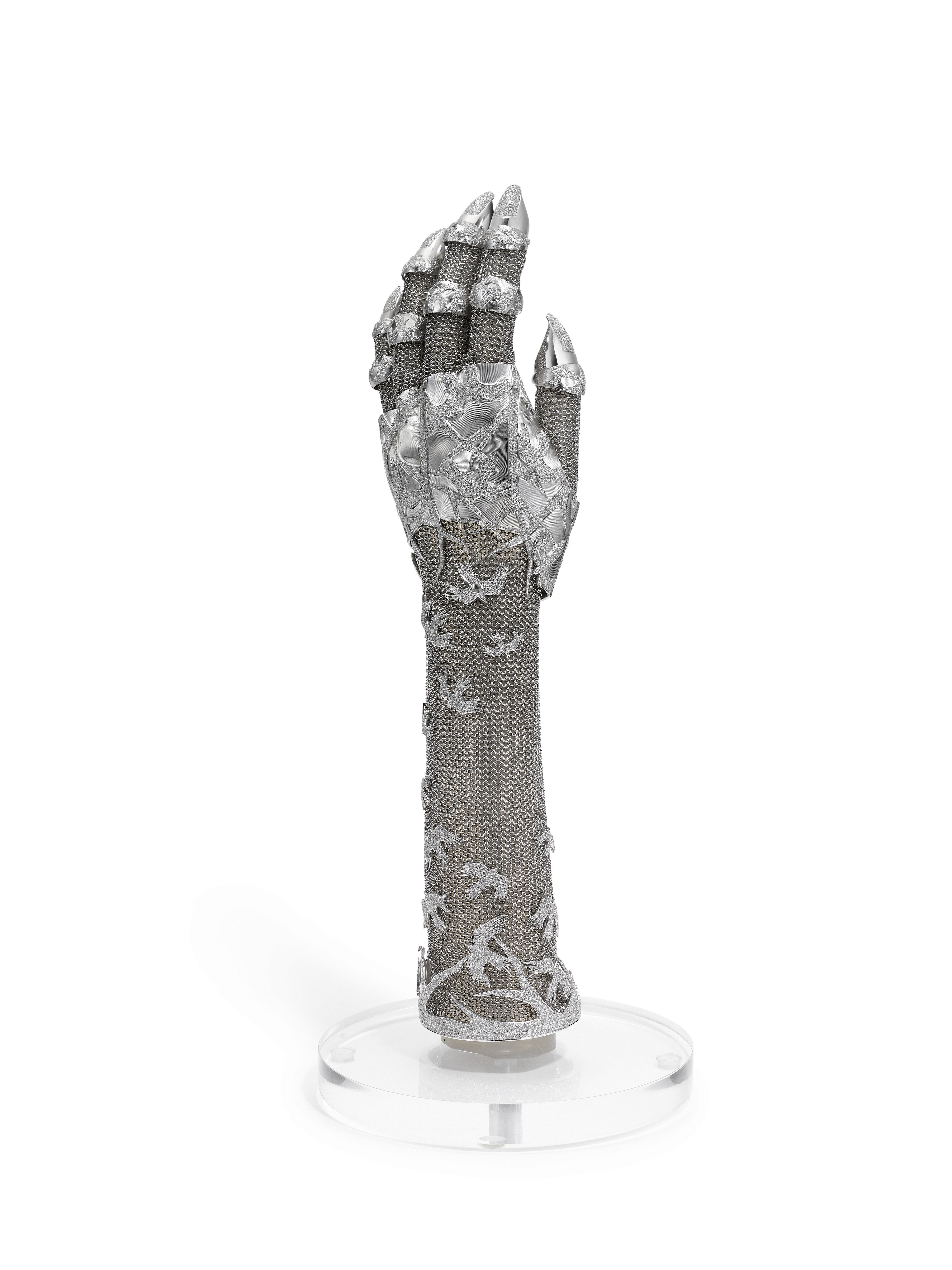 His eponymous atelier came in 1999, with the championing of compatriots Isabella Blow and Daphne Guinness, and subsequent private commissions from both artists, in particular his white gold and diamond glove, Contra Mundum ‘2011 for Guinness and Leane’s Grille Collar ’08, in remembrance of Blow, were featured, amongst other works, in the iconic Alexander McQueen: Savage Beauty exhibition at New York’s The Metropolitan Museum of Art in 2011, and at London’s Victoria and Albert Museum (V&A) in 2015.